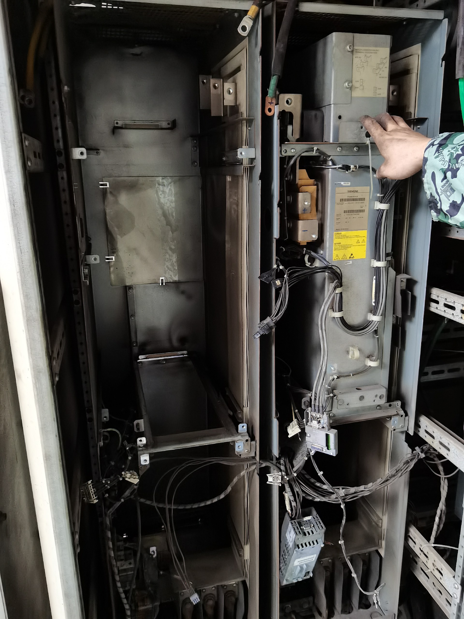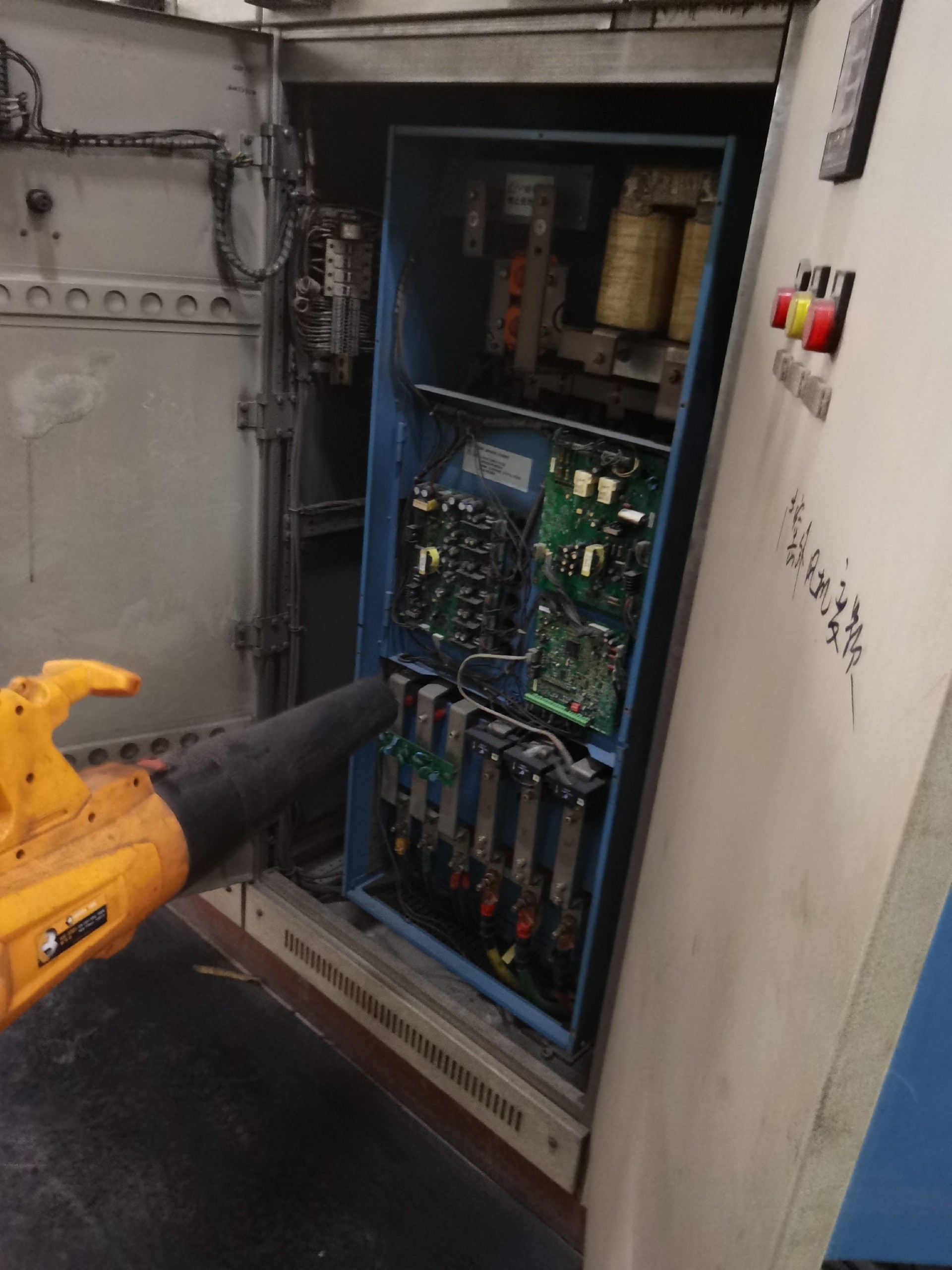 1. 切断电源并等待电容放电后,打开变频器柜门。